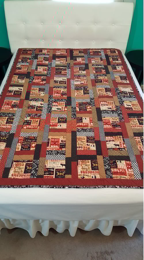 After the grilling is done and the last rib is devoured, curl up for your nap under this BBQ Time throw. This Quiltism throw is deliciously rich in BBQ red, tan and black. The back features a bold, black bandana print.